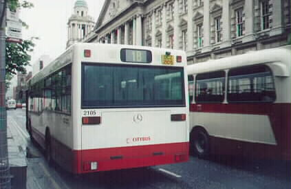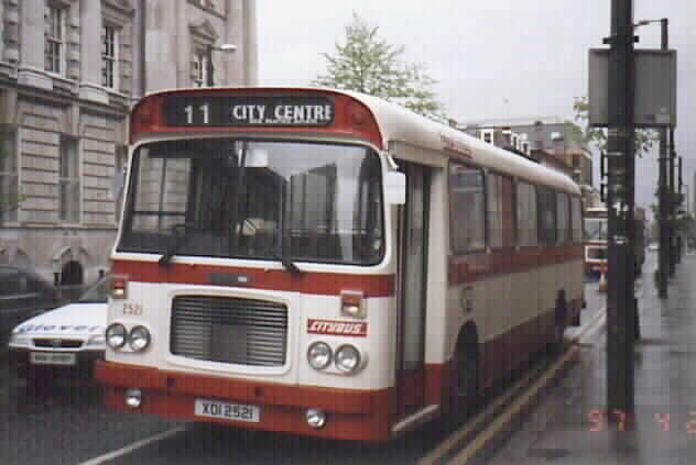 Citybus Bristol RE 2521 (XOI 2521) rests in Donegall Square South between