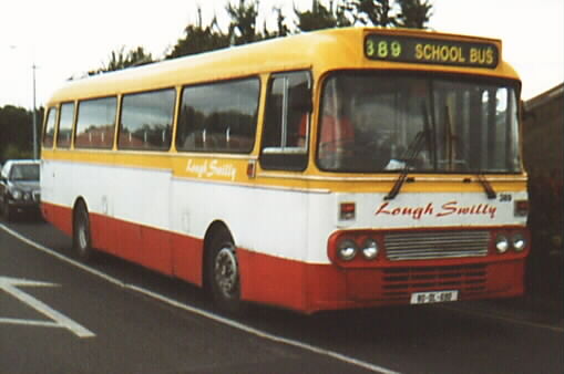 Since the 1960s Lough Swilly has operated a lot of official school buses in North Donegal, and a separate fleet of buses is kept for this. It currently has a separate livery from the normal passenger service fleet. At the minute the school buses are red, white and yellow. A few years ago they were red and cream, which is the livery I think the Swilly Freight lorries are still in. The passenger buses have a red and white livery, although I think this was red & cream in the 1980s. Lough Swilly certainly seems to change its liveries quite regularly.